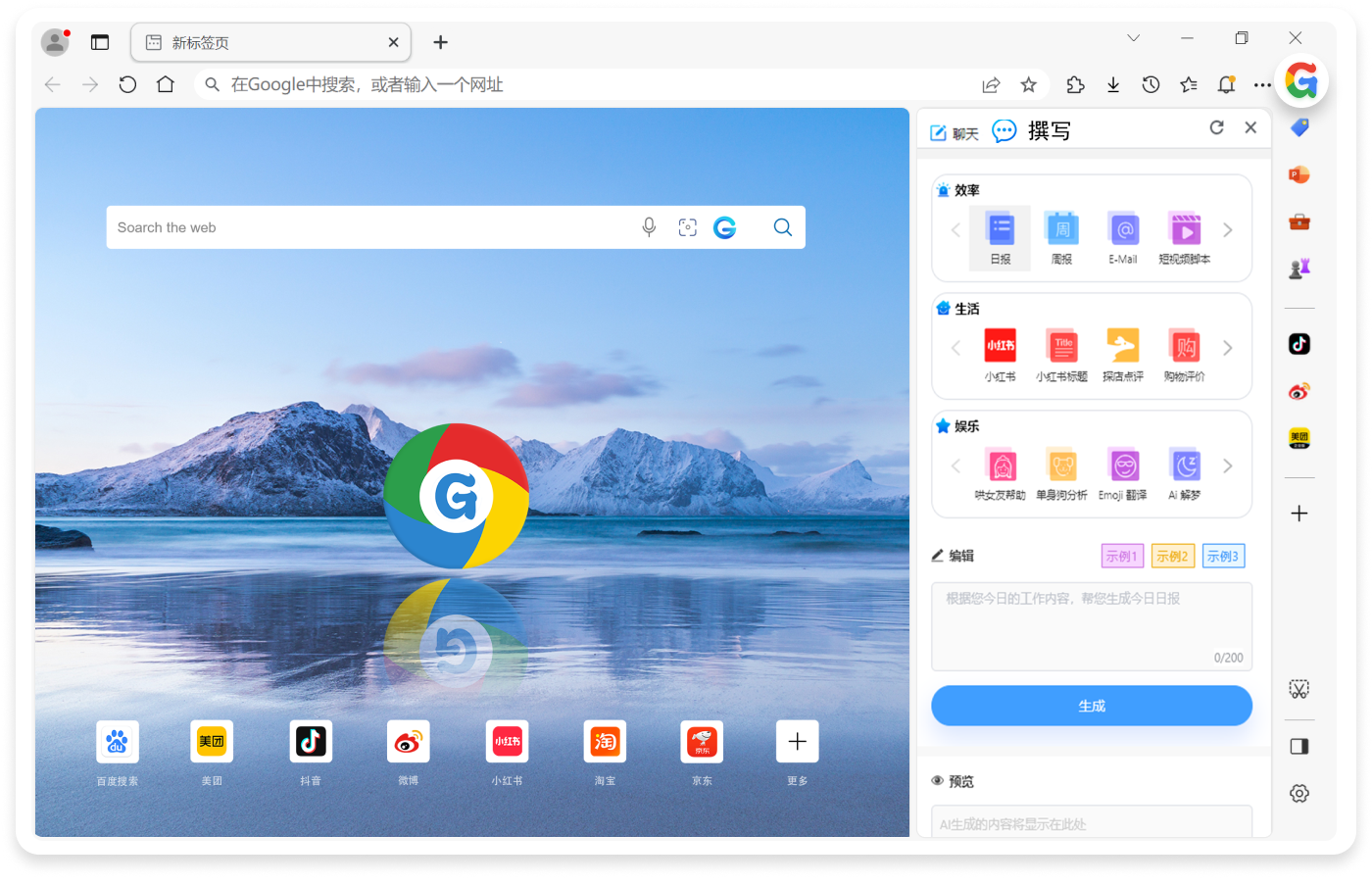 AI 支持的功能,让您更轻松、更快速地在 Web 上学习、享受、创建和工作。